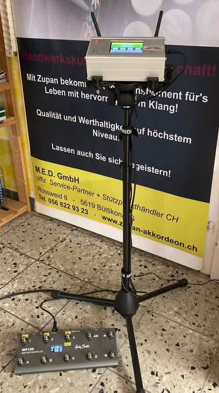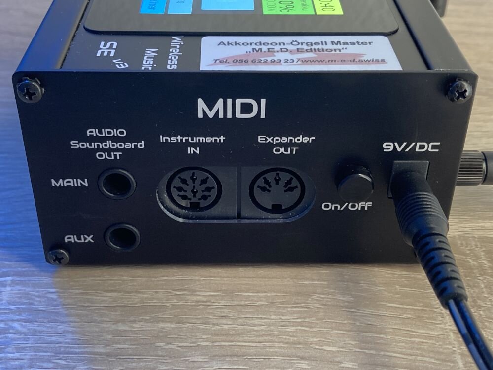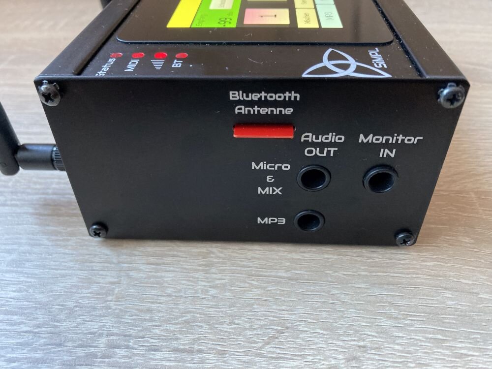 Gehäuseansicht oben Gehäuseansicht oben Display Gehäuseansicht rechts Gehäuseansicht links Gehäuseansicht hinten V3 Soundboard für einbau in Wireless Music SE v3 Wireless Music Riemensender mit In Ear Songbook App mit Wireless Music SE v3 verbinden SiMPL Technolgy Wireless Music Serie